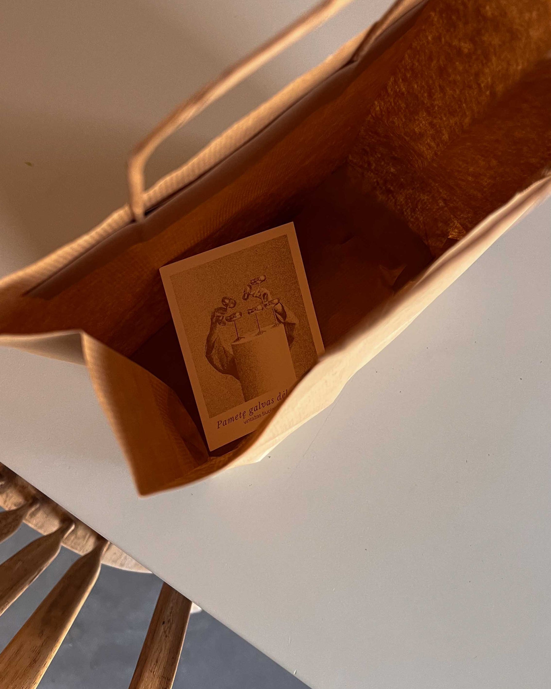 / Pridedame padėkos korteles, pagamintas iš popieriaus atraižų, atspausdintas gamtai draugišku risografijos būdu.