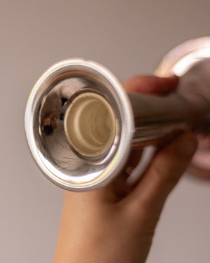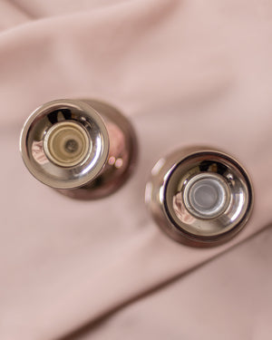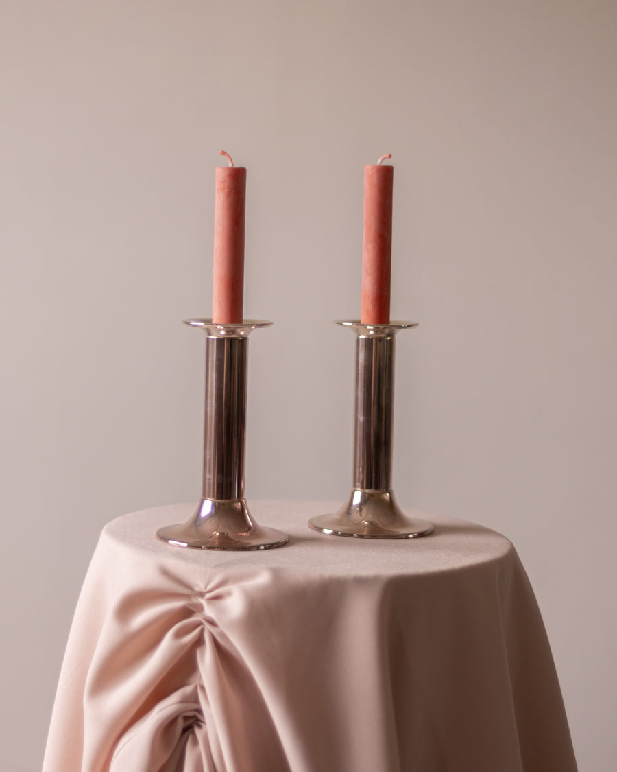 2 vintažinis, minimalistinio dizaino, sidabru dengtos žvakidės.