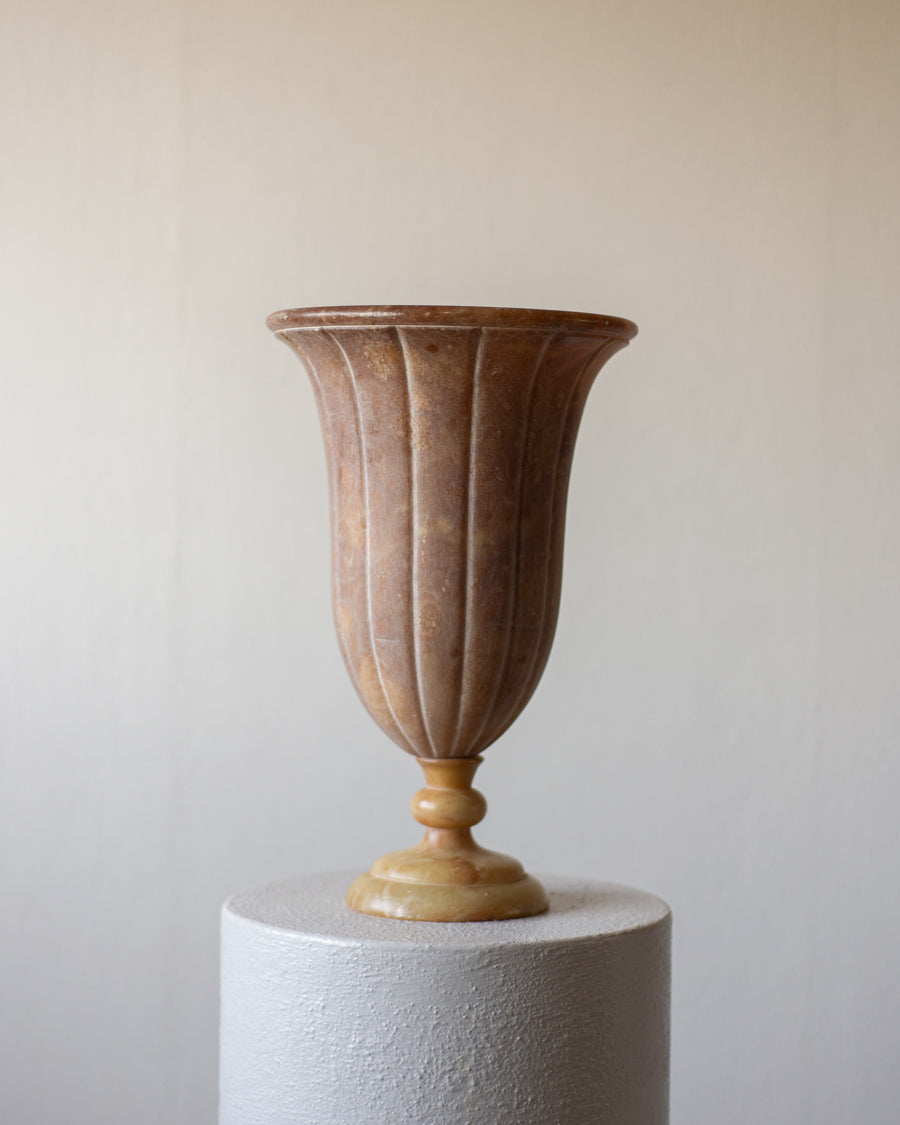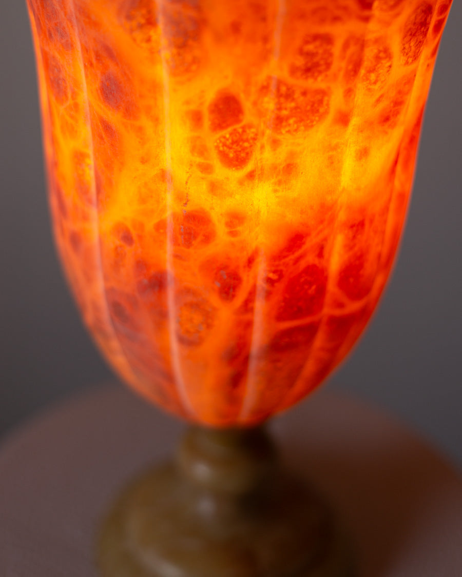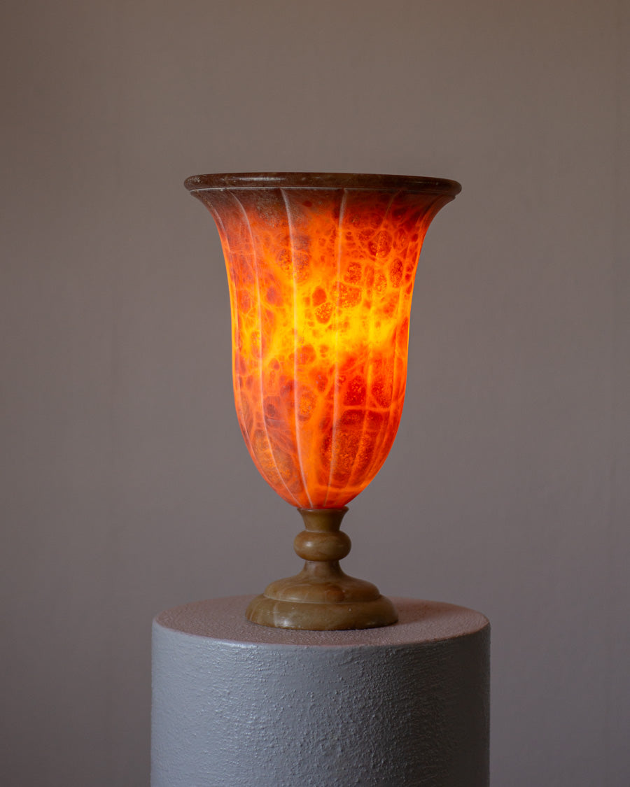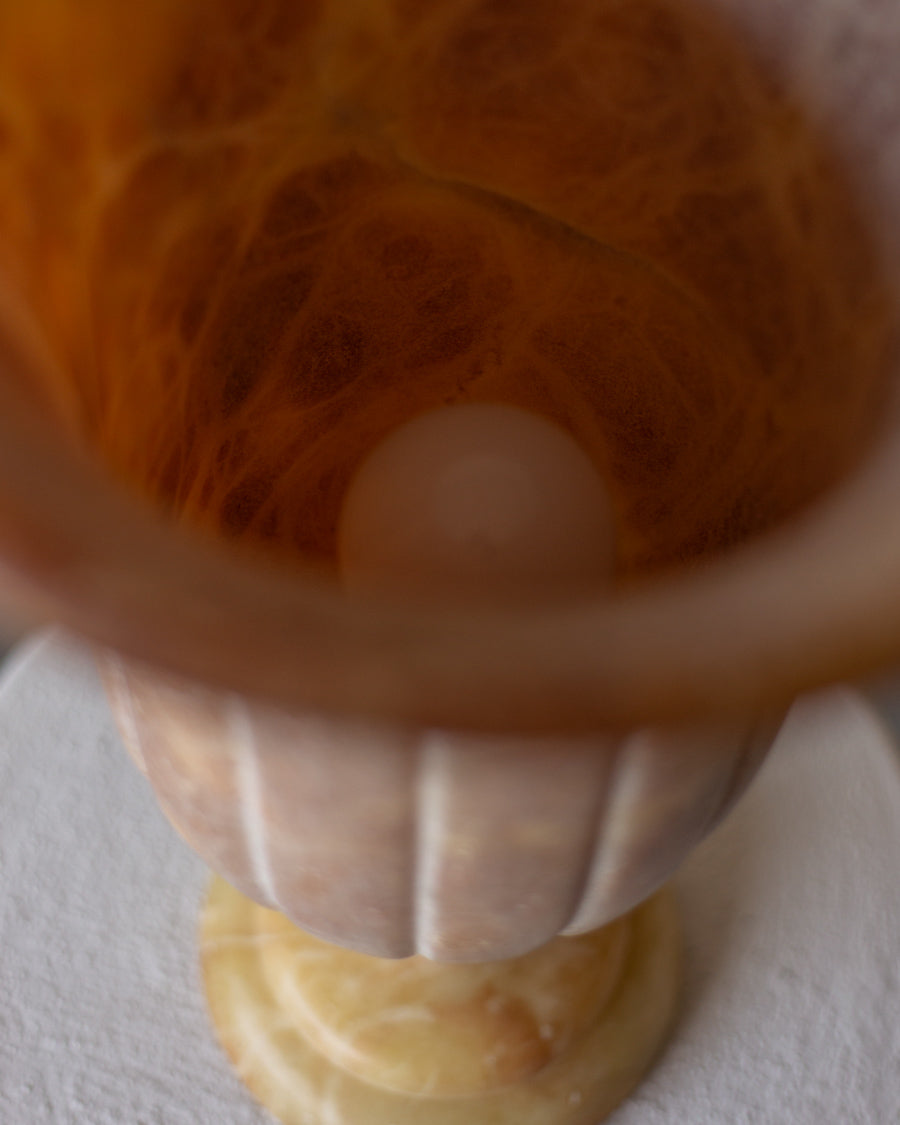 Šiltos rudos spalvos alabastro Art Deco šviestuvas su natūraliomis akmens gijomis.