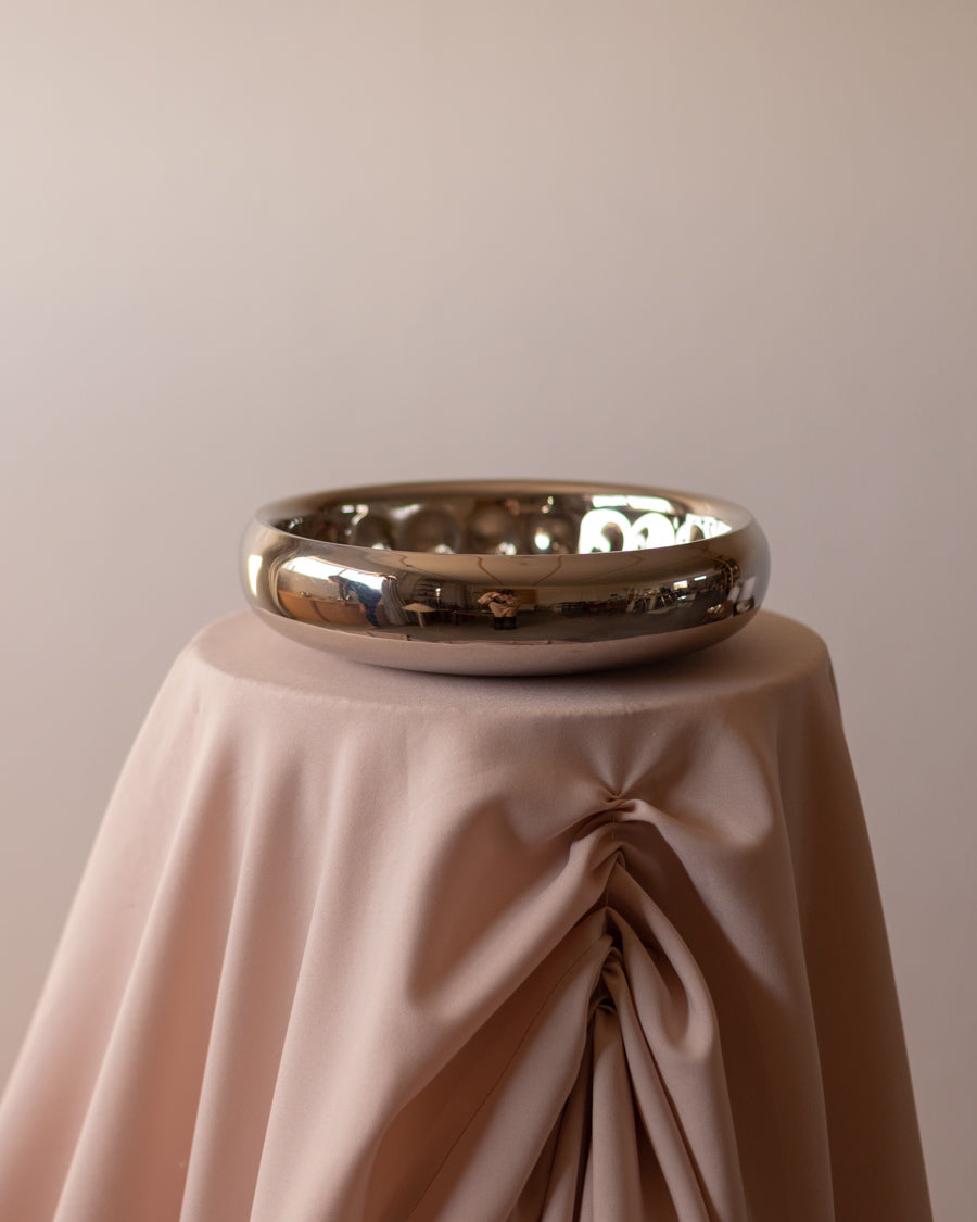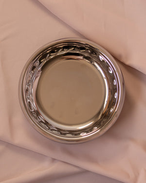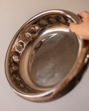 Nerūdijančio plieno, AMC dvidugų sienelių dubuo, su įspaustų apskritimų dekoru.