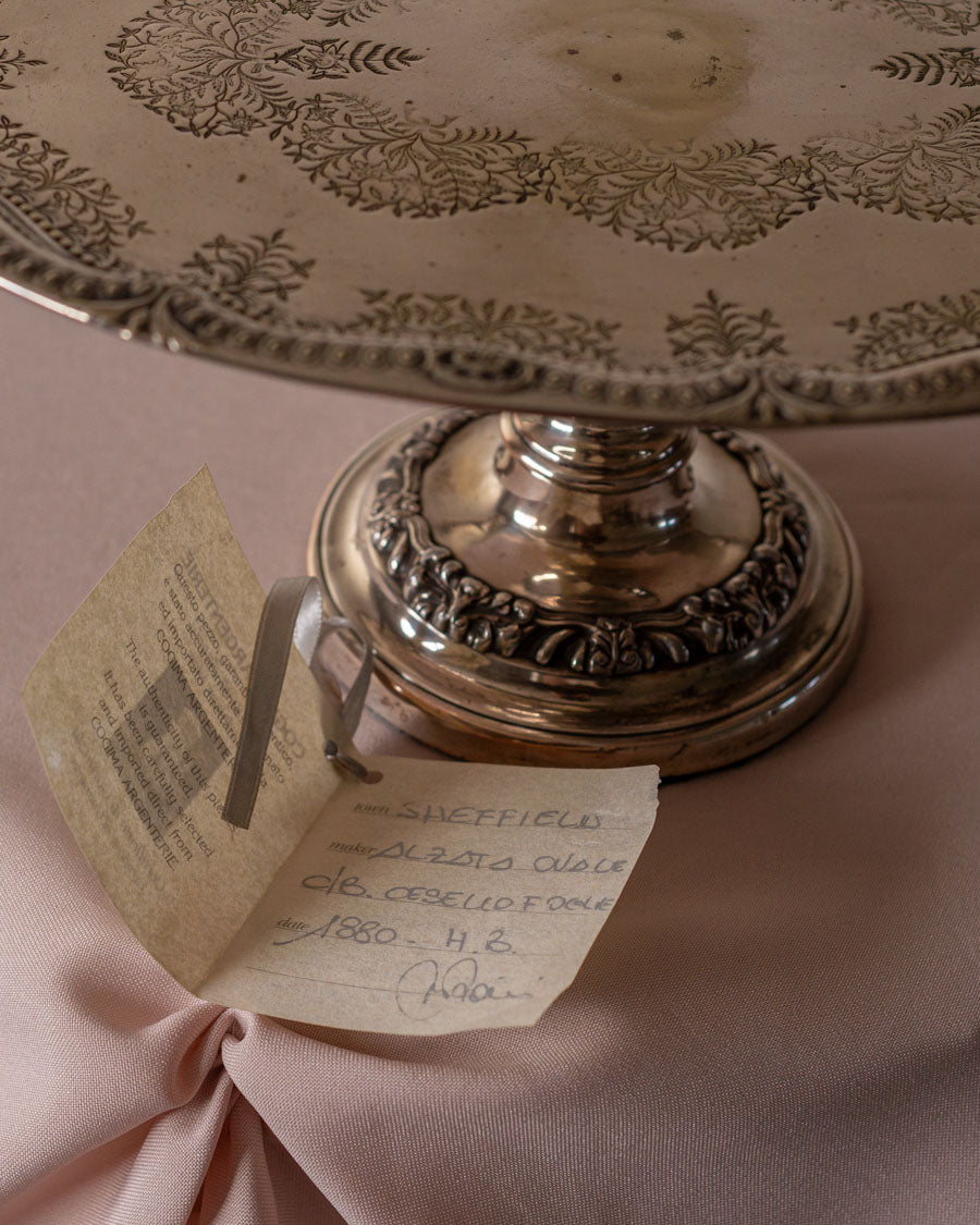 Ypatingas radinys - antikvarinis Sheffield indas ant kojelės, datuojamas 1880m., turintis kokybės sertifikatą.