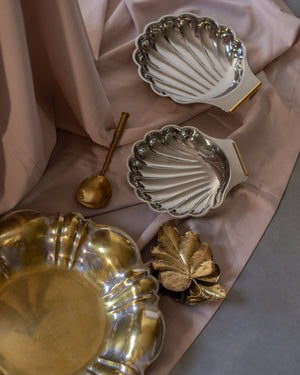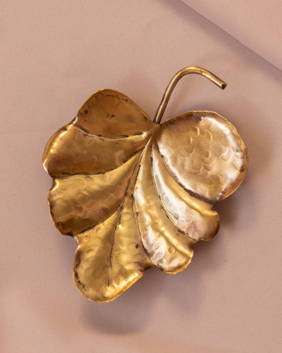 Vintažinė, rankų darbo, lapo formos lėkštutė, pagaminta iš žalvario.