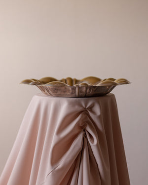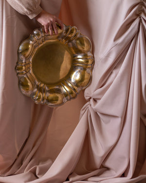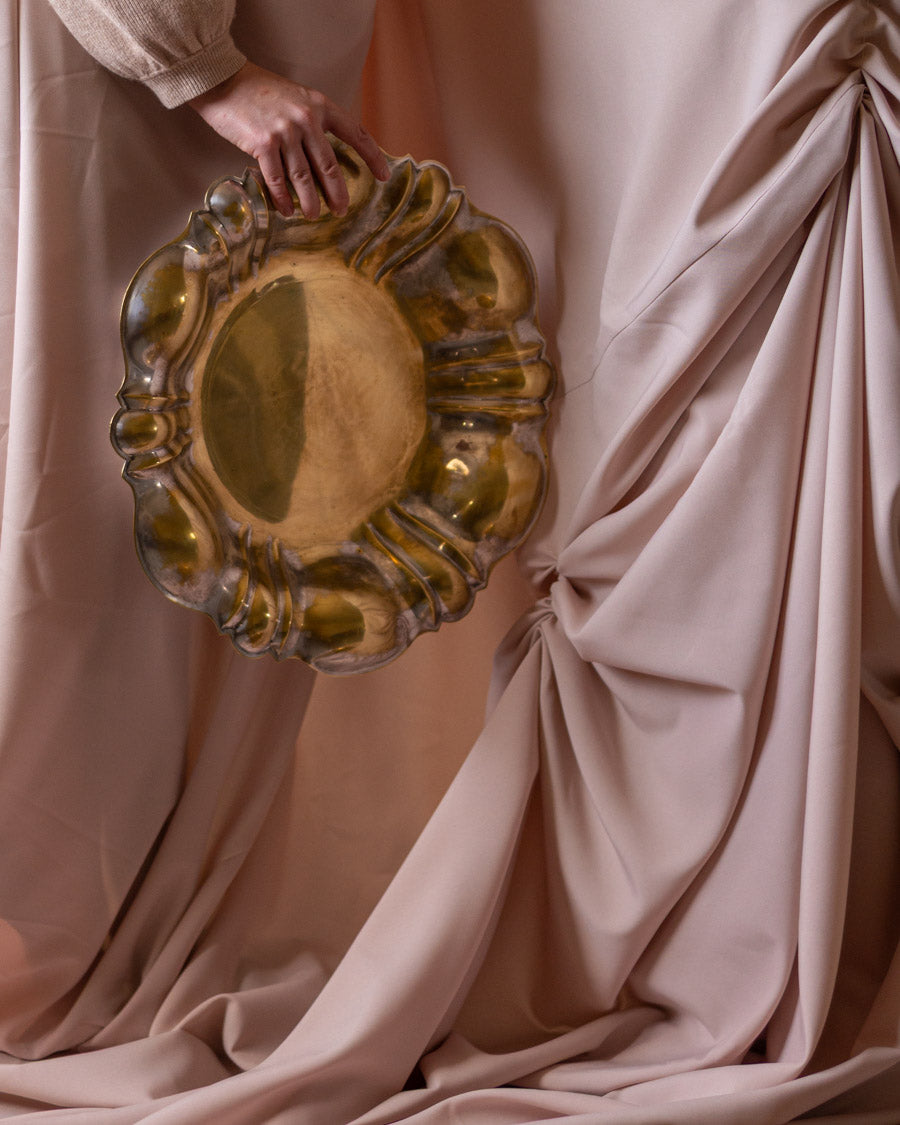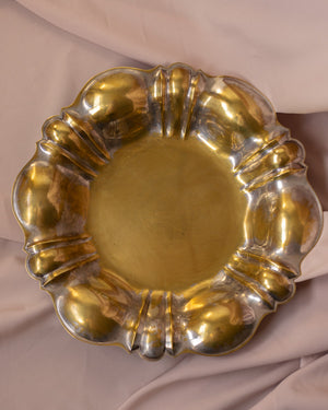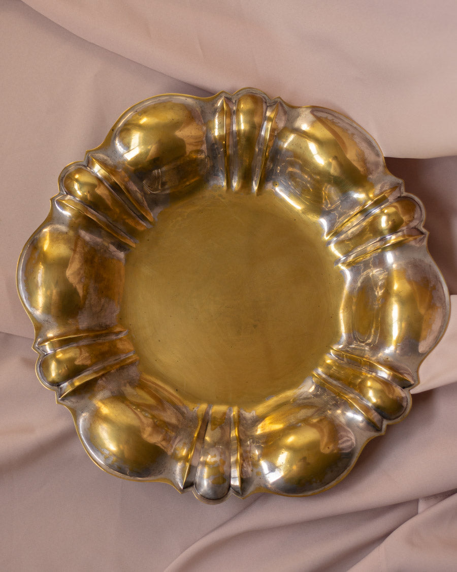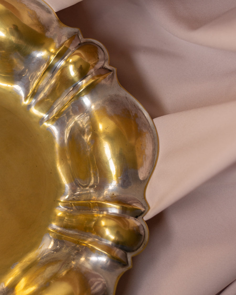 Didelis, skulptūriškas žalvarinis indas, dengtas sidabru. Atkeliavęs iš Italijos.