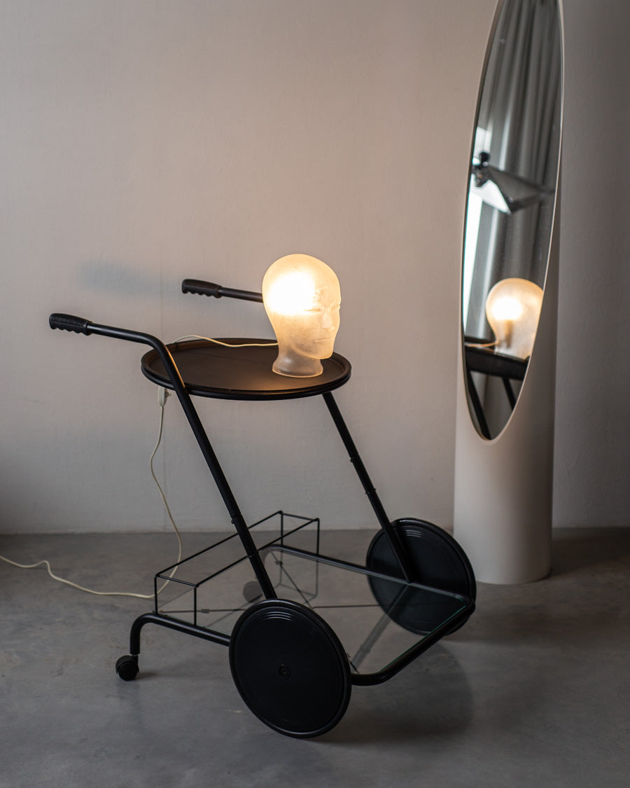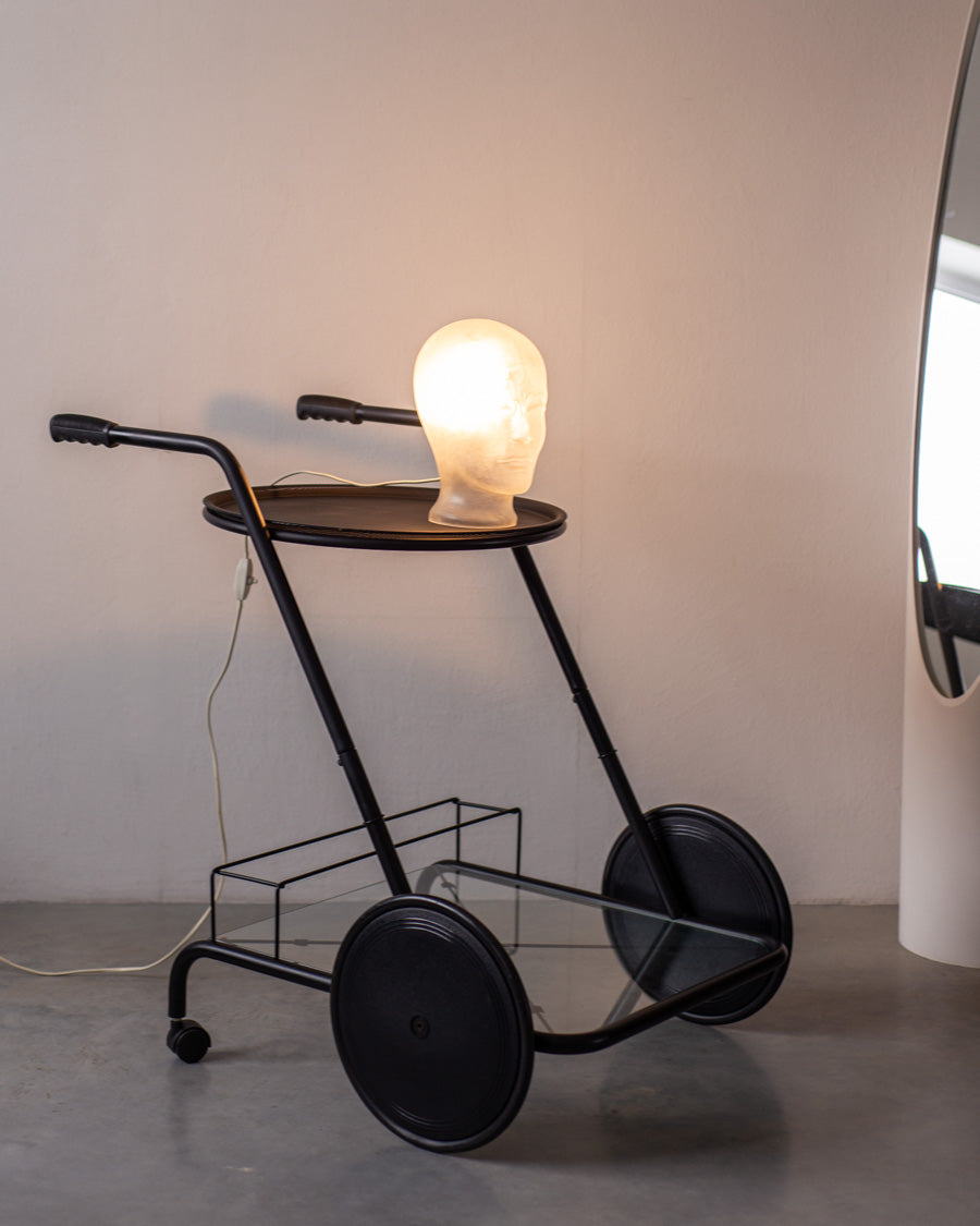 Švedų dizainerės Eva Englund sukurta matinio stiklo galva, kuri iš dekoracijos buvo paversta į stalinį šviestuvą, simbolizuojantį kilusią idėją galvoje.