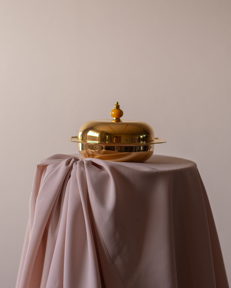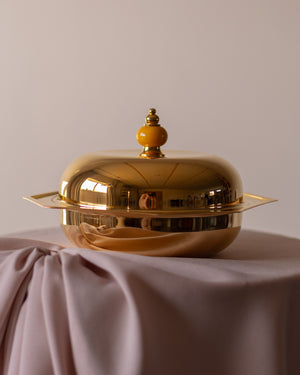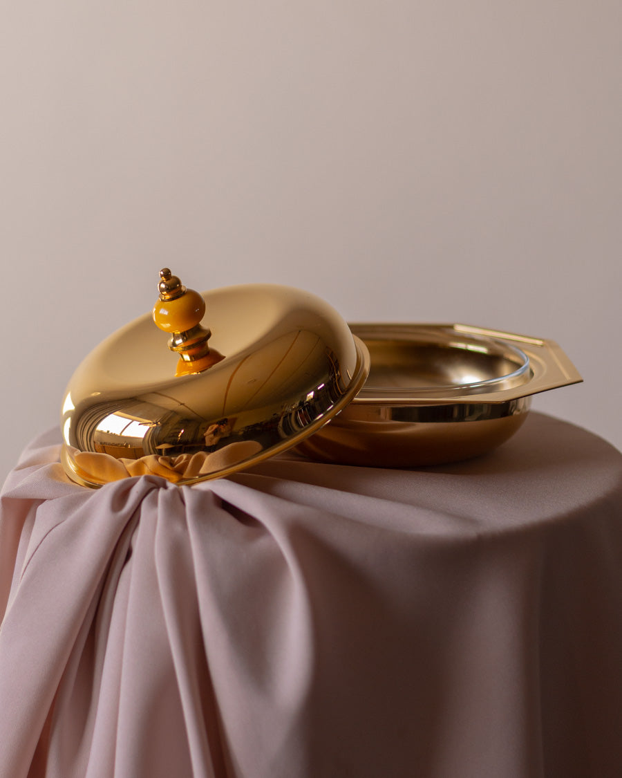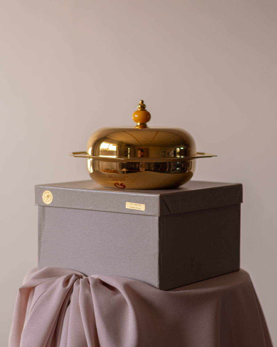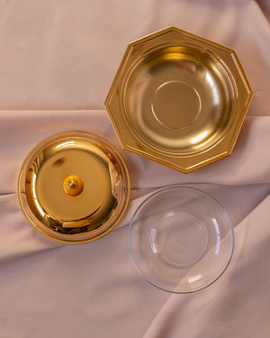 Vintažinis, aštuonkampio formos, 24k auksu dengtas indas su dangčiu.