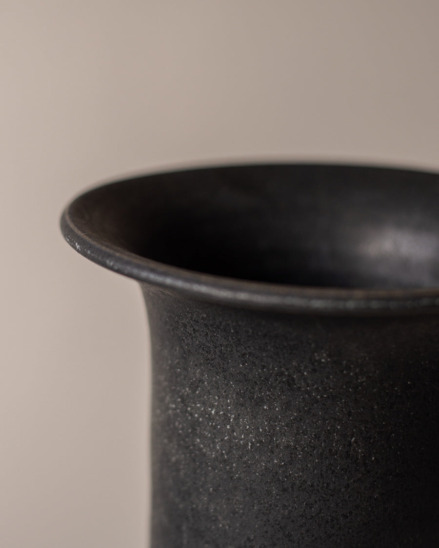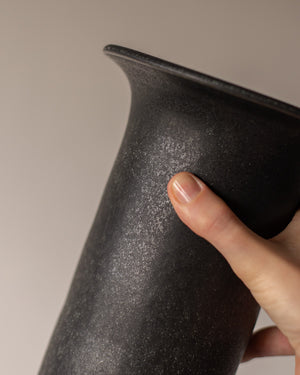 Vintažinė, juodos spalvos su perlamutro blizgesiu, vaza, atkeliavusi iš Nyderlandų.