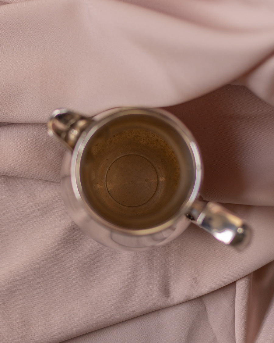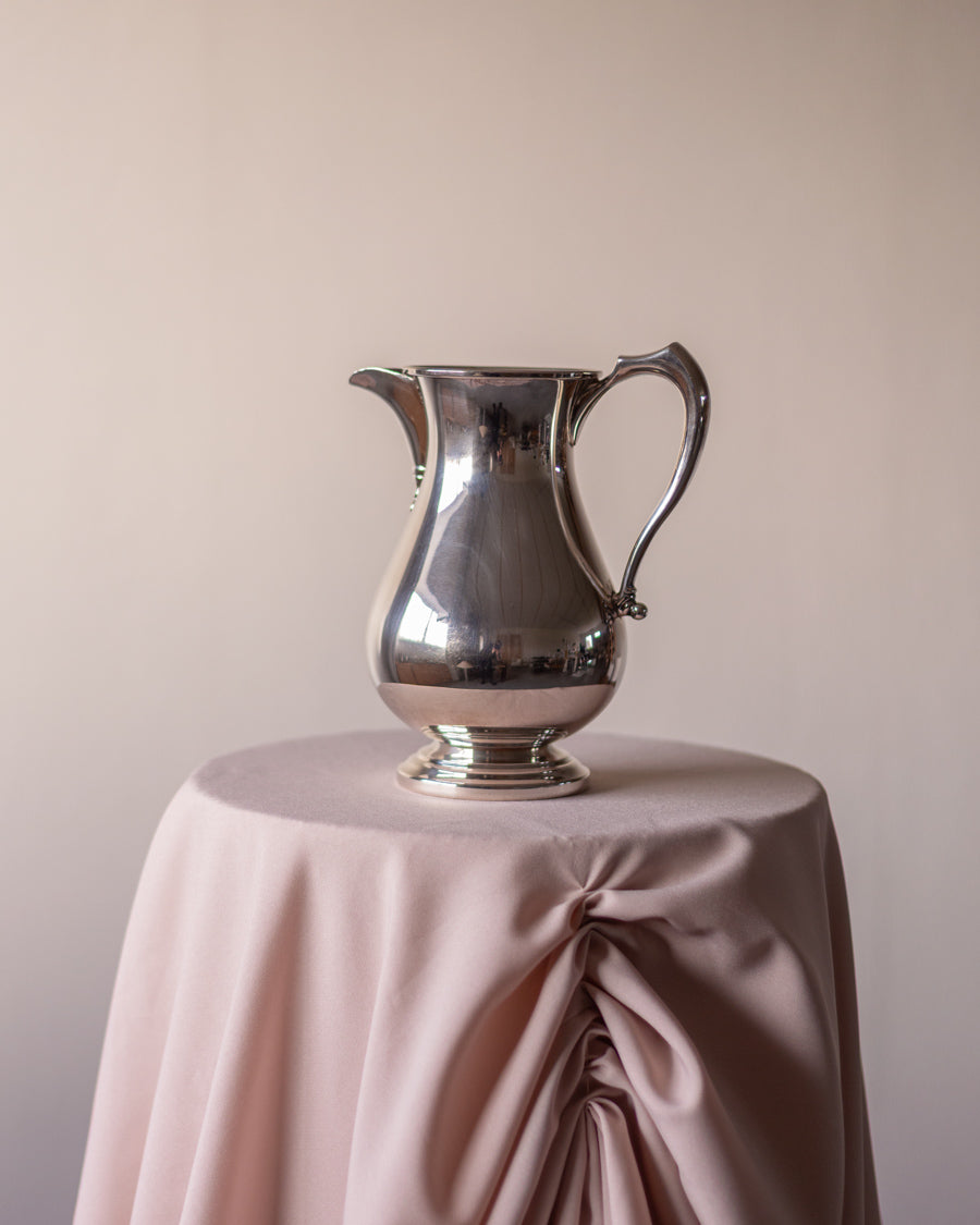 Vintažinis, klasikinio dizaino, sidabru dengtas ąsotis, atkeliavęs iš Italijos.