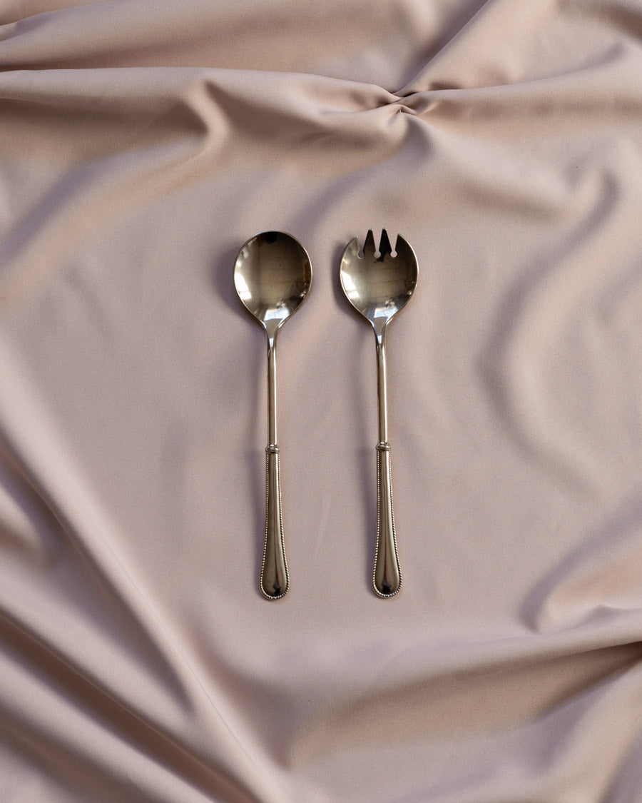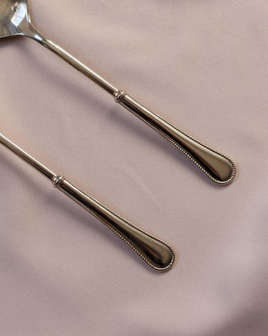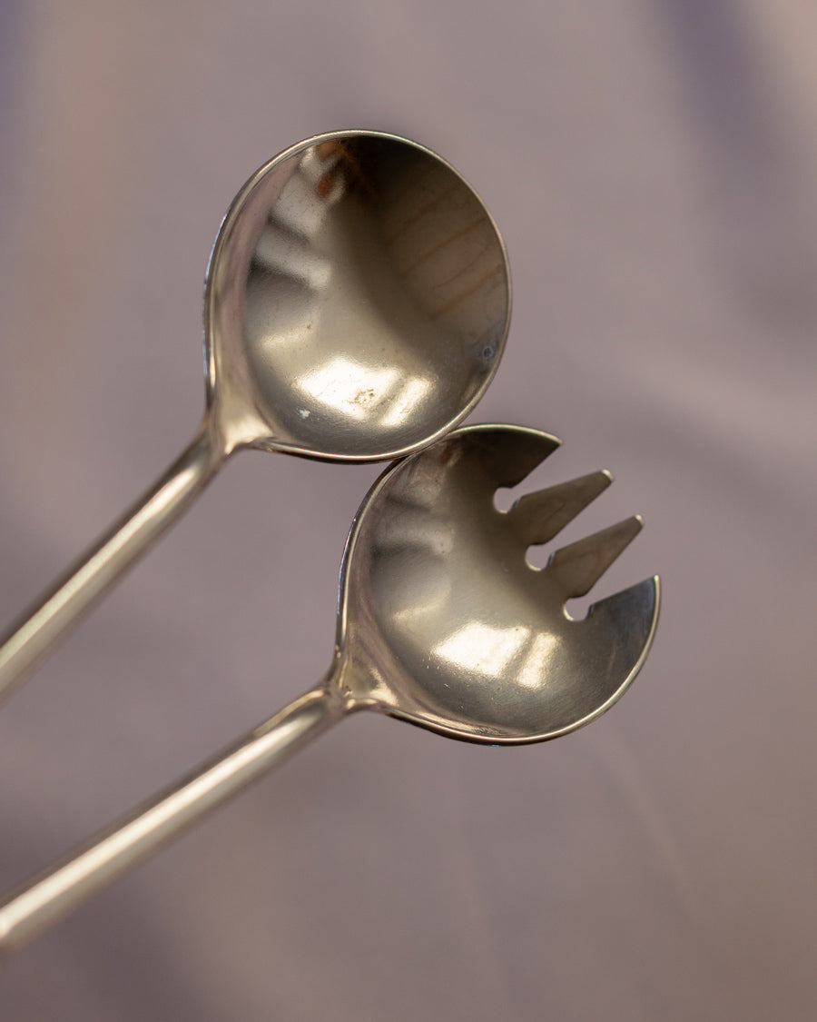 Vintažiniai, klasikinio dizaino, sidabru dengti serviravimo įrankiai.