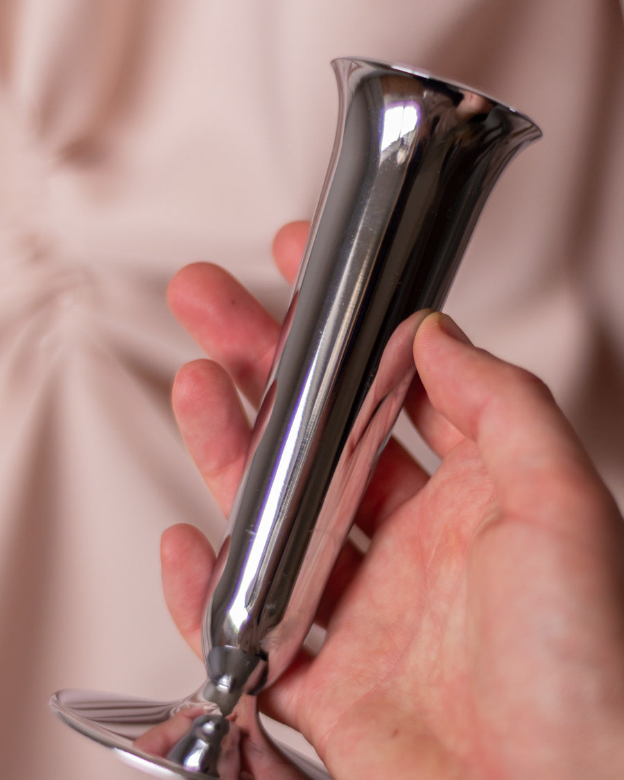 Vintažinė, į viršų platėjanti, sidabru dengta vintažinė vazelė.