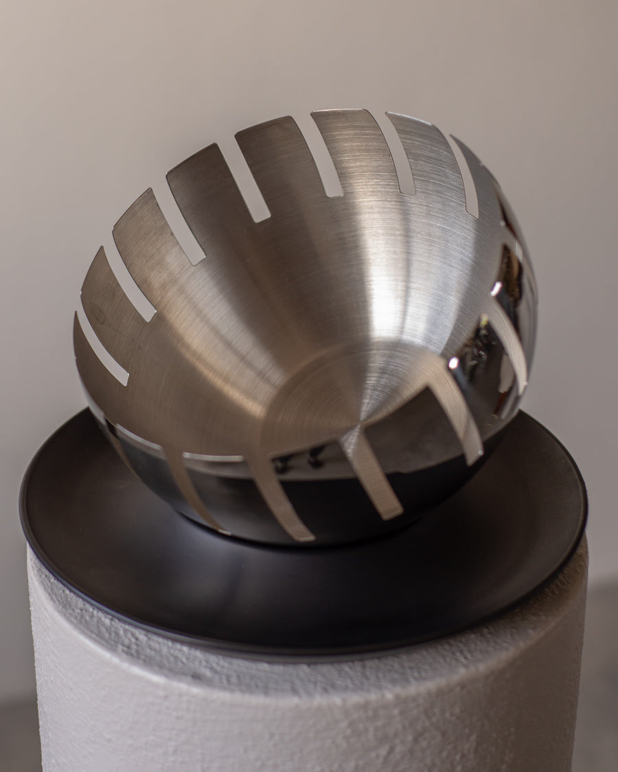 Dubuo atspindi šiuolaikinio europietiško dizaino estetiką - paprastumą, funkcionalumą ir subtilų modernumą. Iš nerūdijančio plieno pagamintas dubuo išsiskiria švariomis linijomis, kurį galite skirtingai pakreipti ant plastikinio stovo.