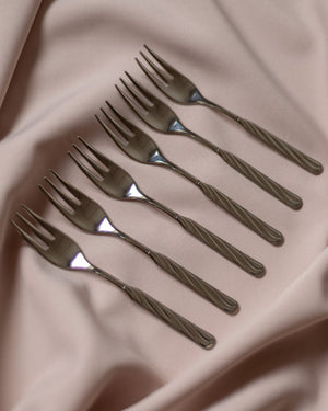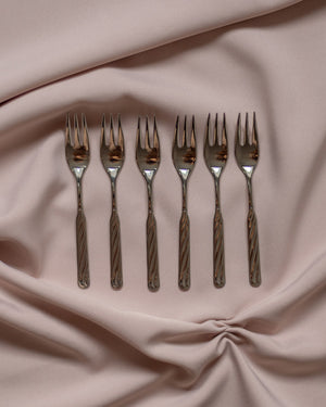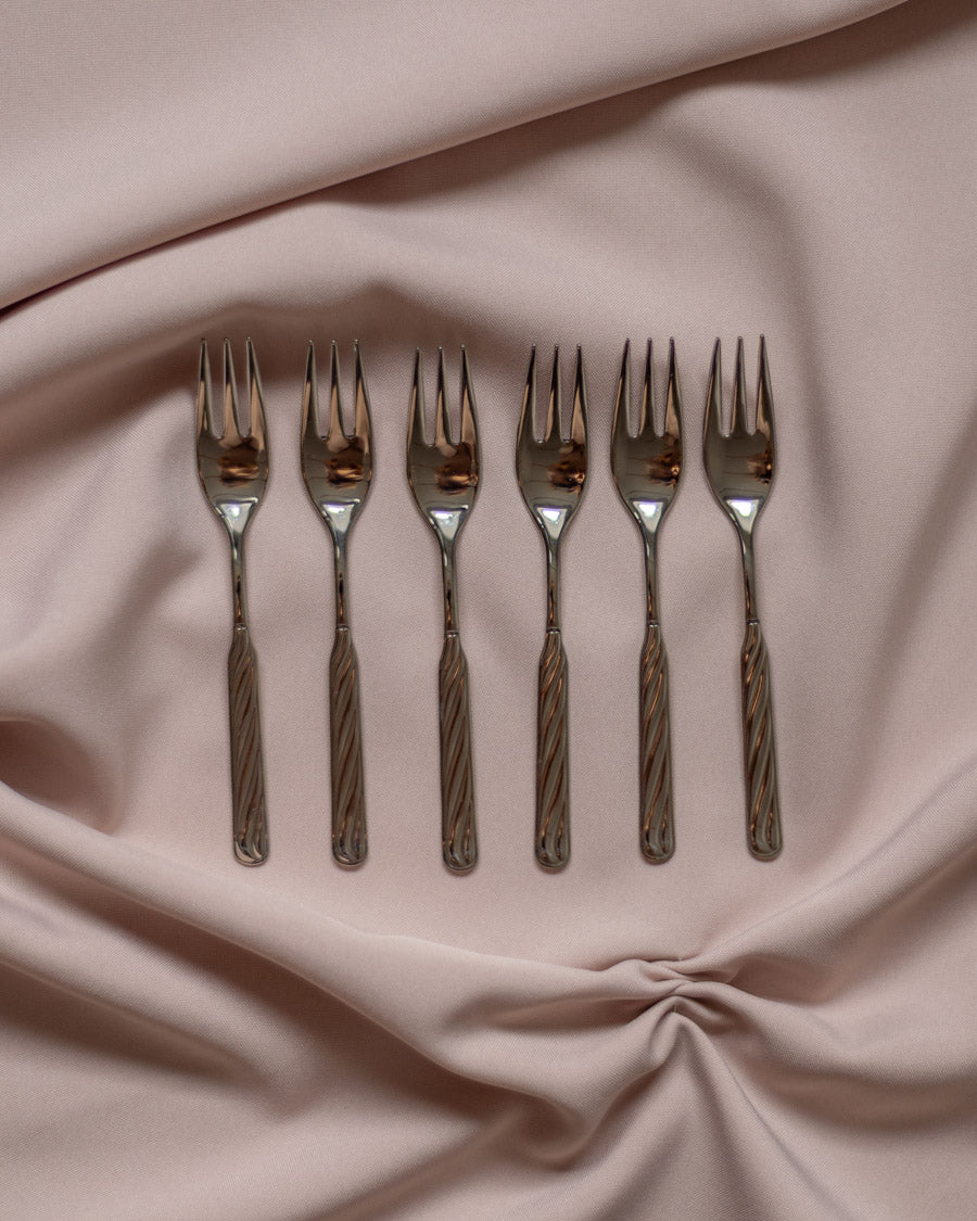 6 vintažinės, italų gamintojo - Pinti desertinės šakutės, pagamintos iš nerūdijančio plieno.