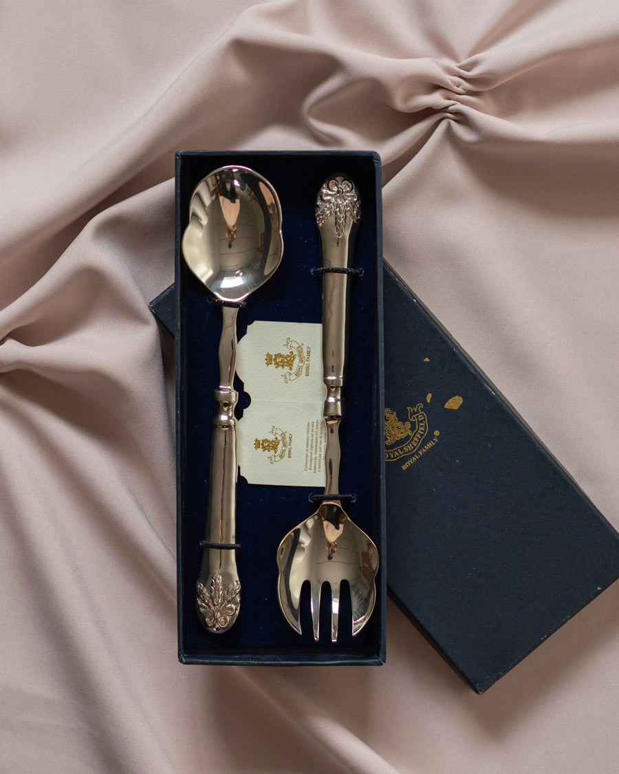 Limituotos kolekcijos Royal Sheffield serviravimo įrankiai su dekoratyviomis rankenomis.