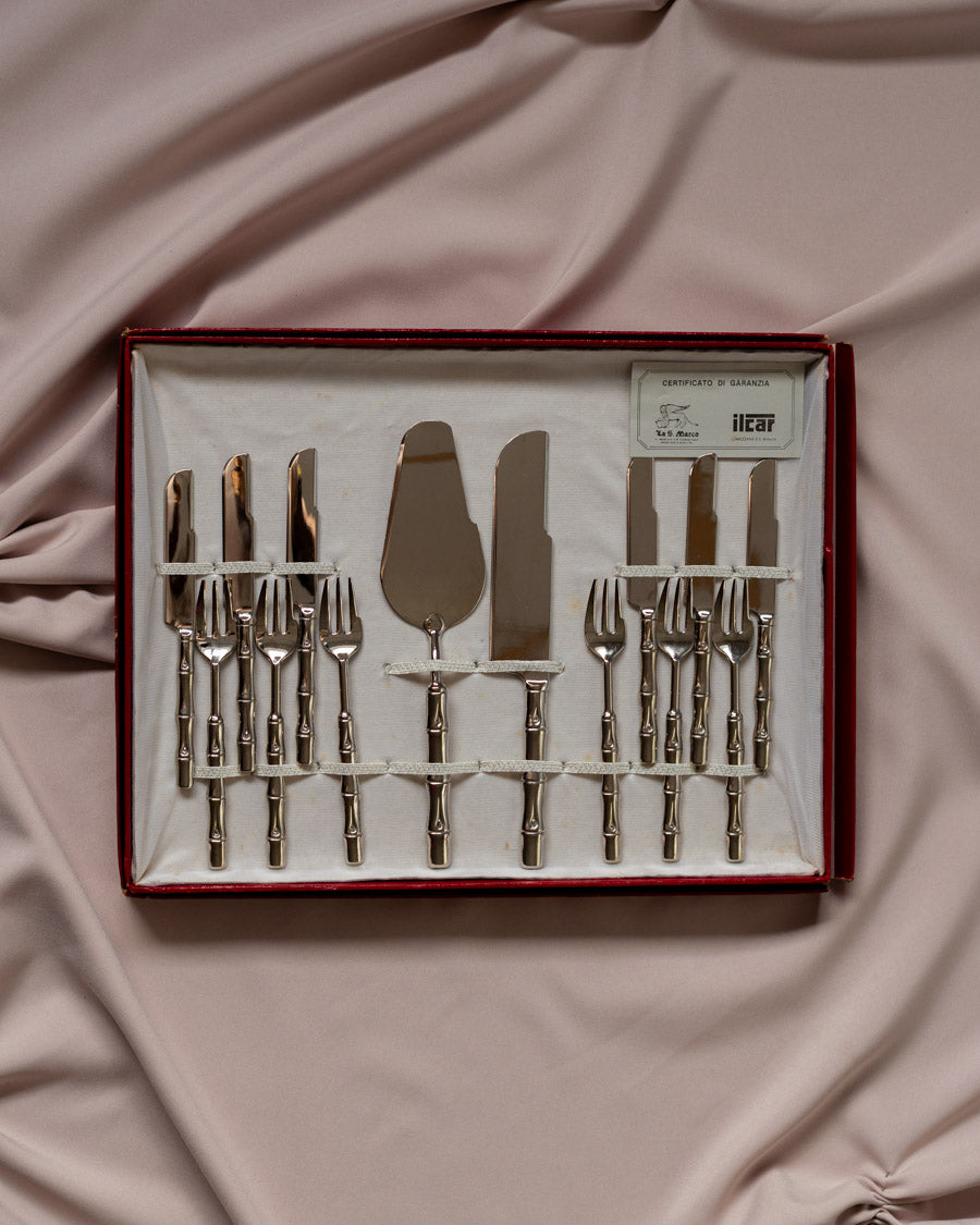 Sidabru dengtas desertų įrankių rinkinys originalioje dėžutėje