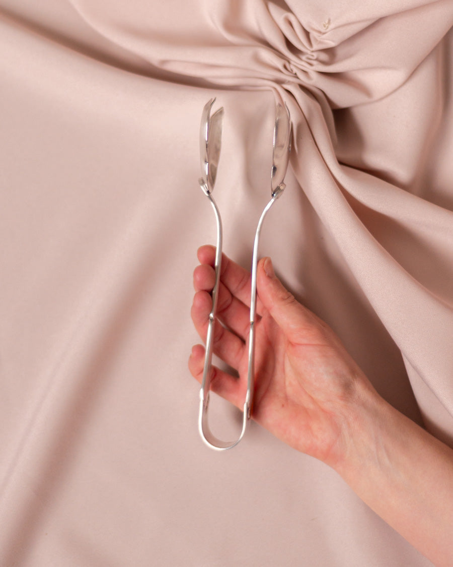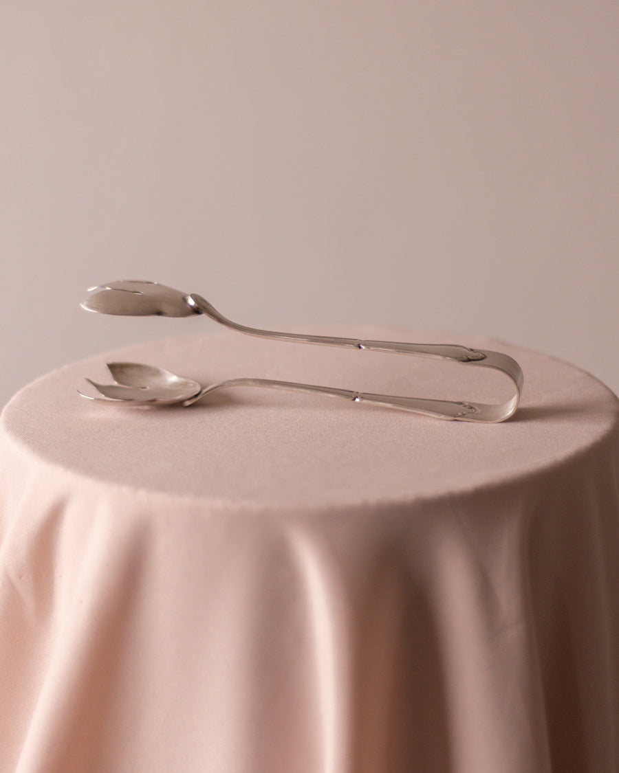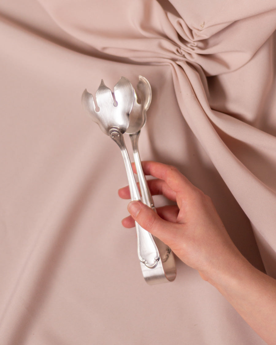 Vintažinės, sidabru dengtos serviravimo žnyplės, atkeliavusios iš Italijos.