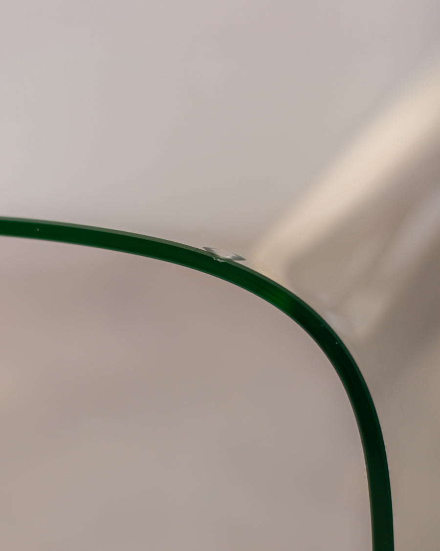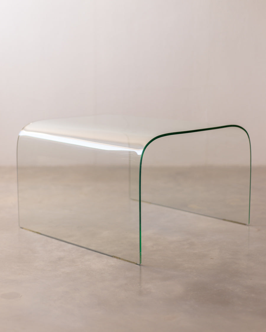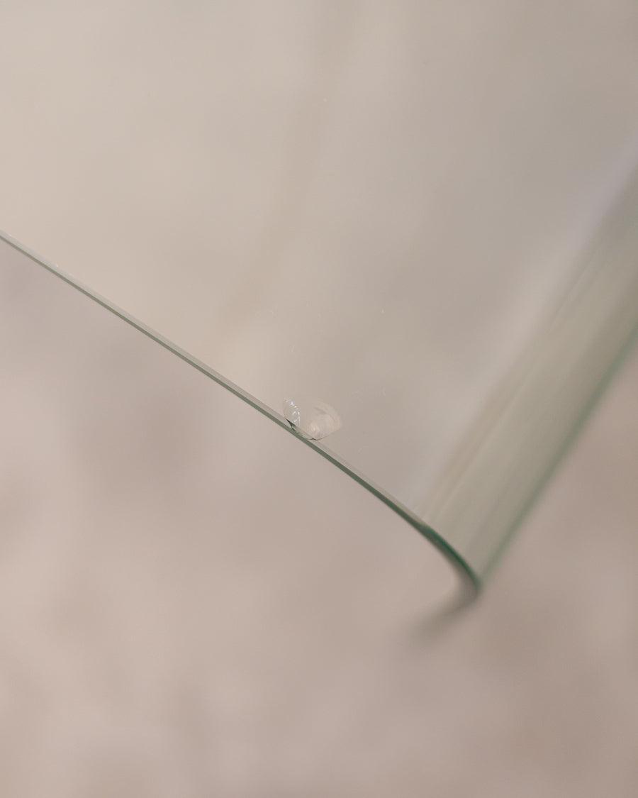 Monolitinis, lenkto grūdinto stiklo kavos staliukas.