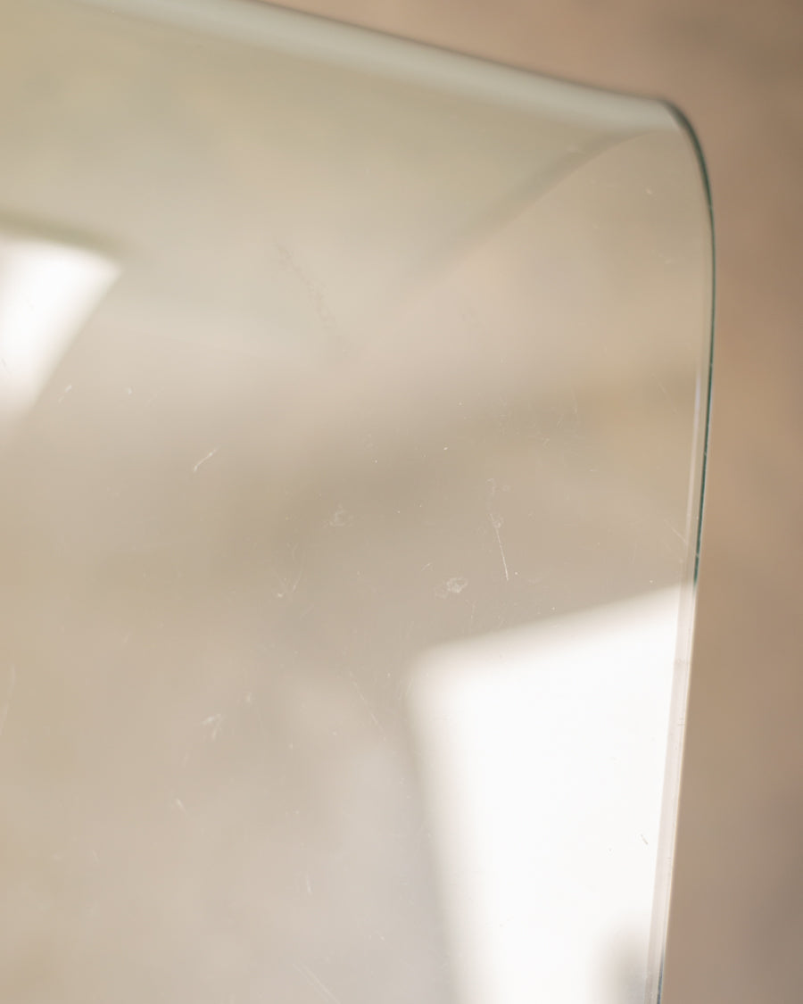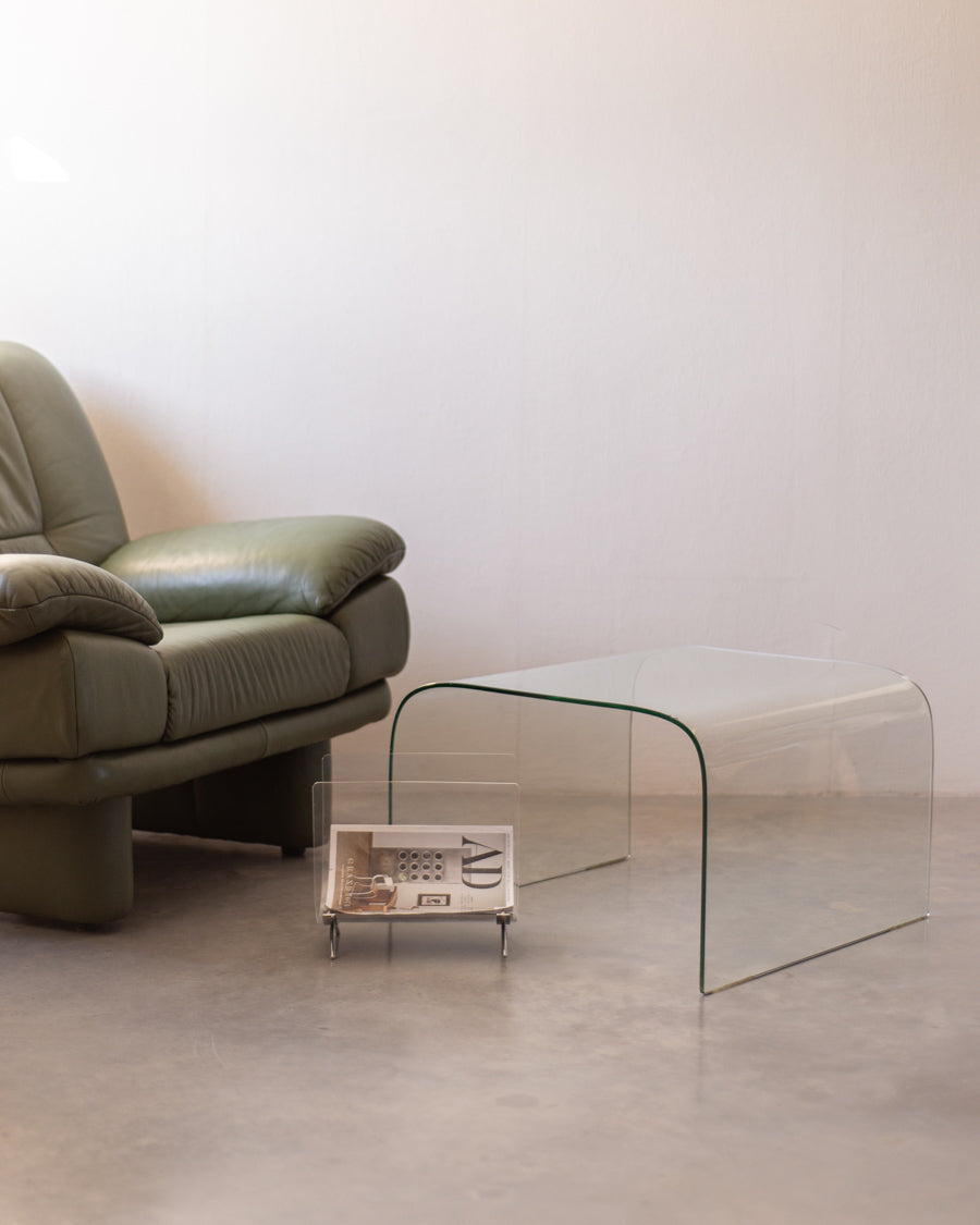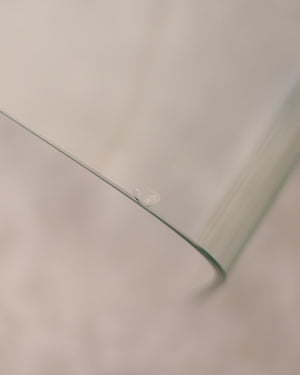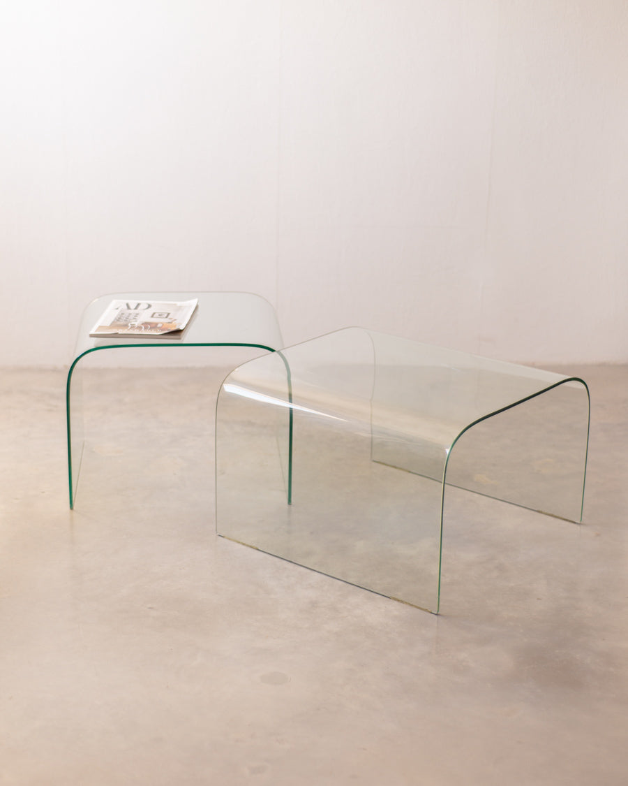Monolitinis, lenkto grūdinto stiklo kavos staliukas.