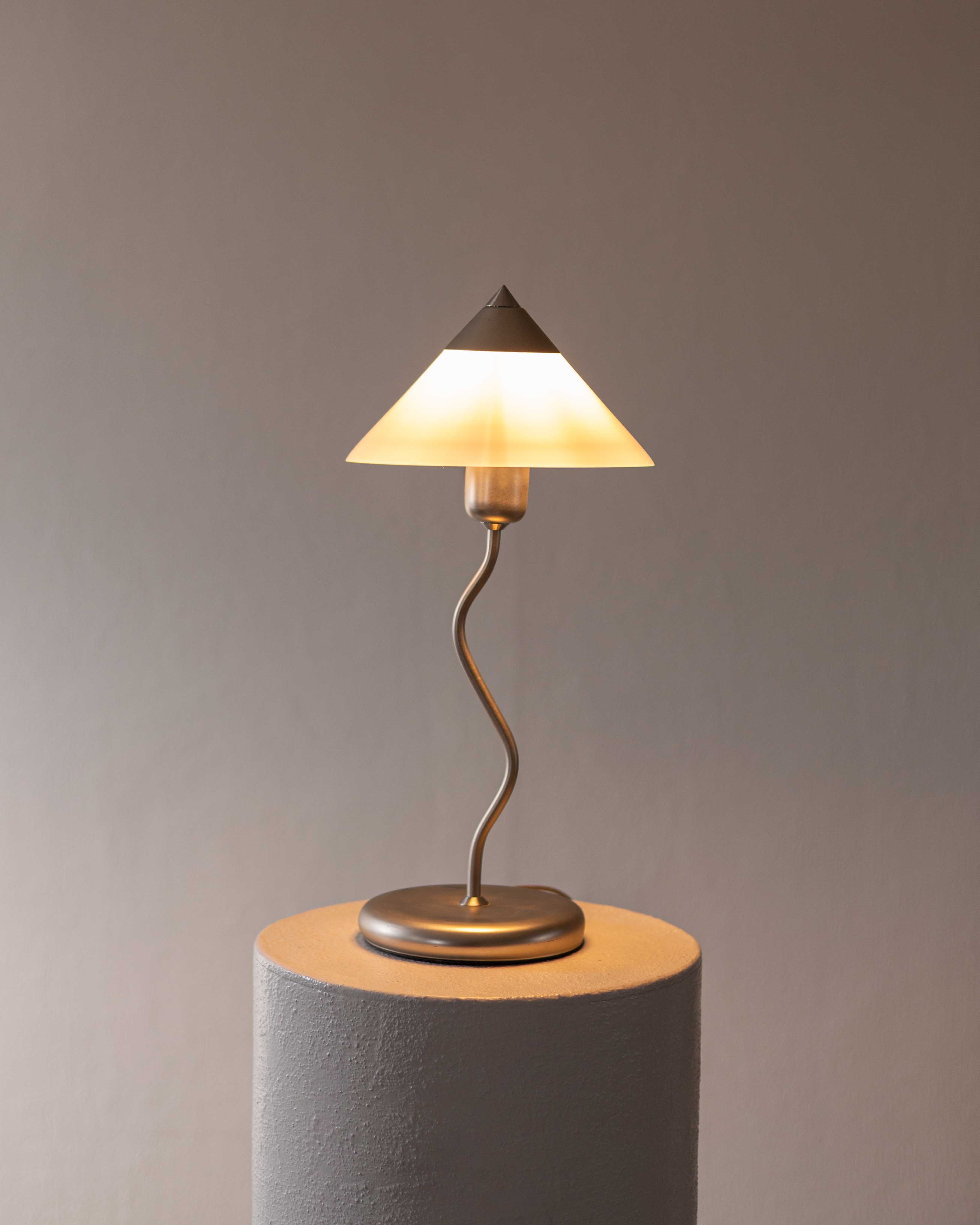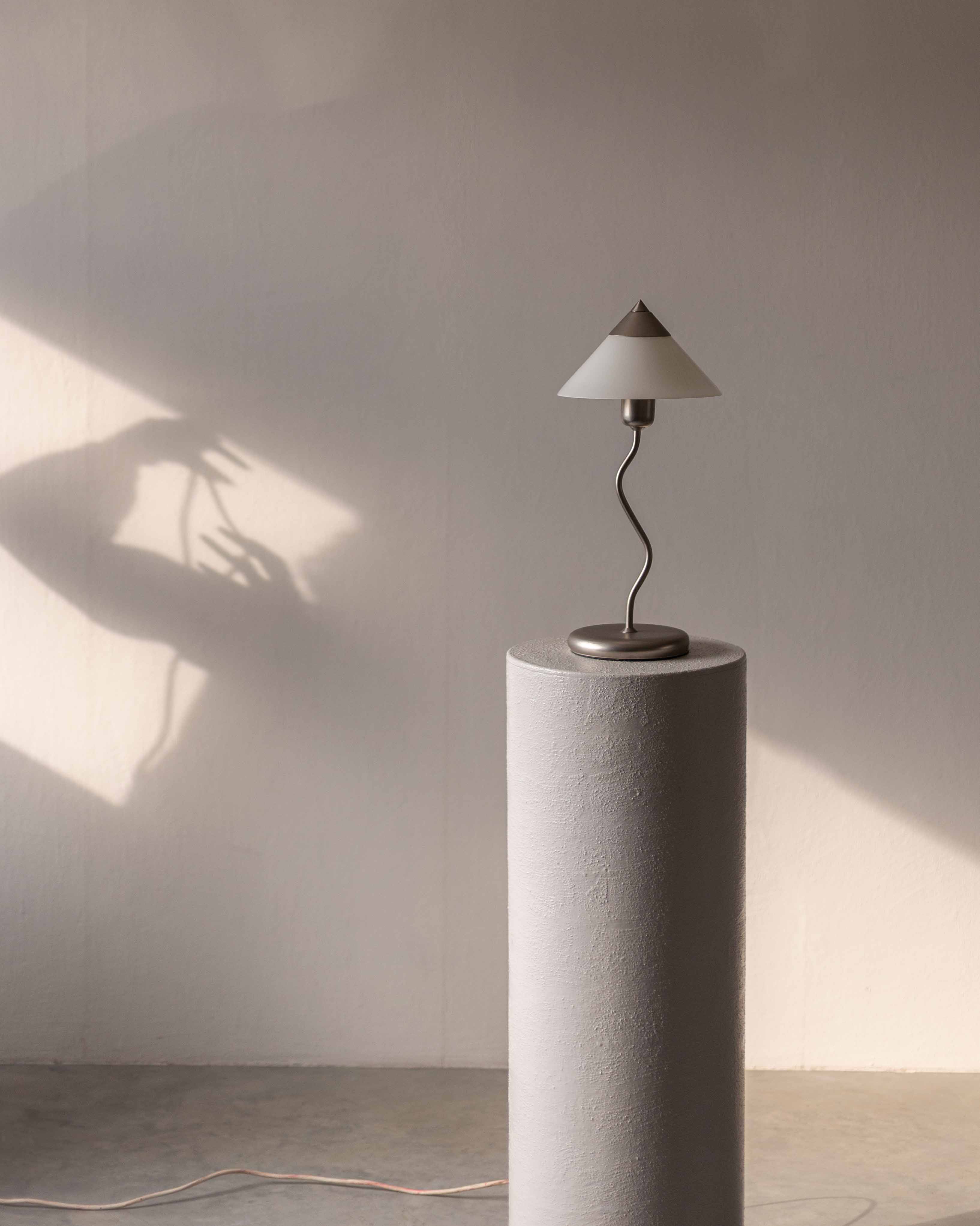 Postmodernistinio šviestuvo dizainas įkvėptas Memphis.