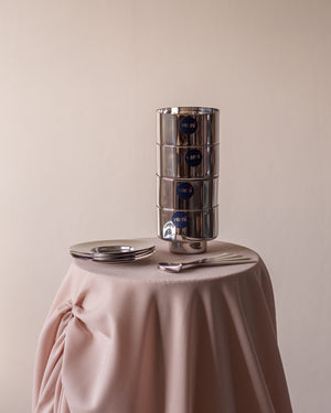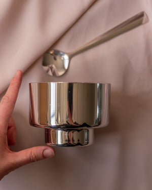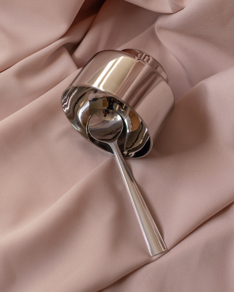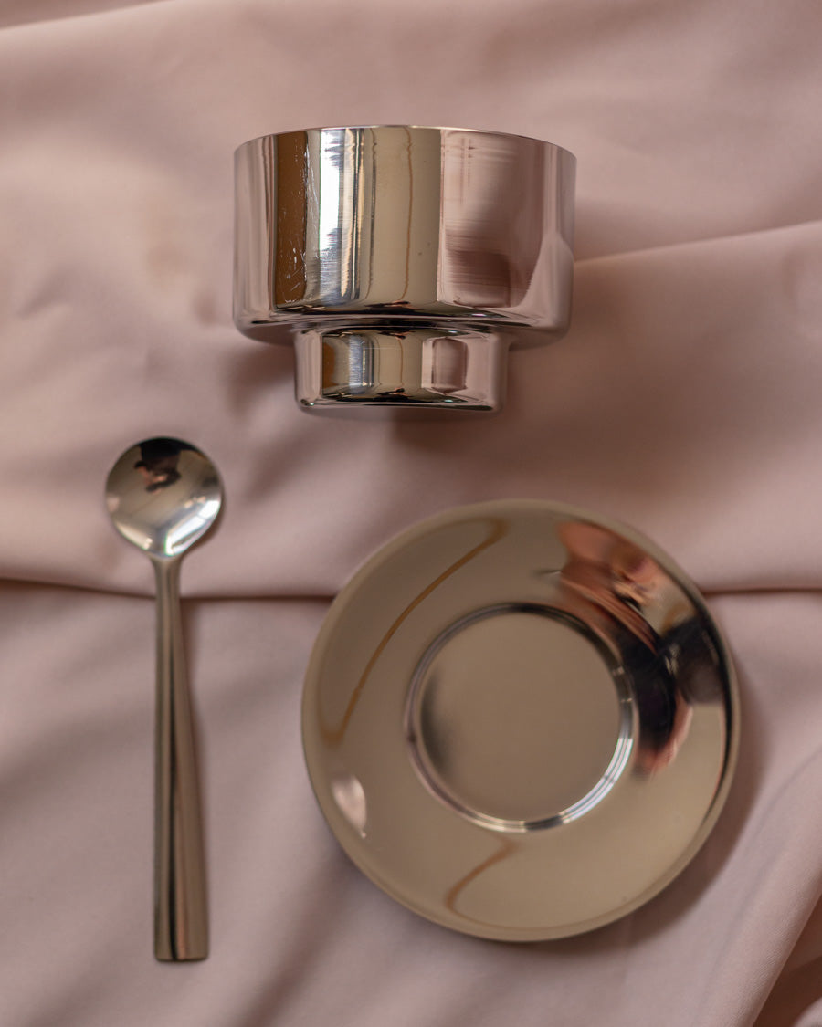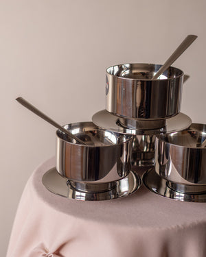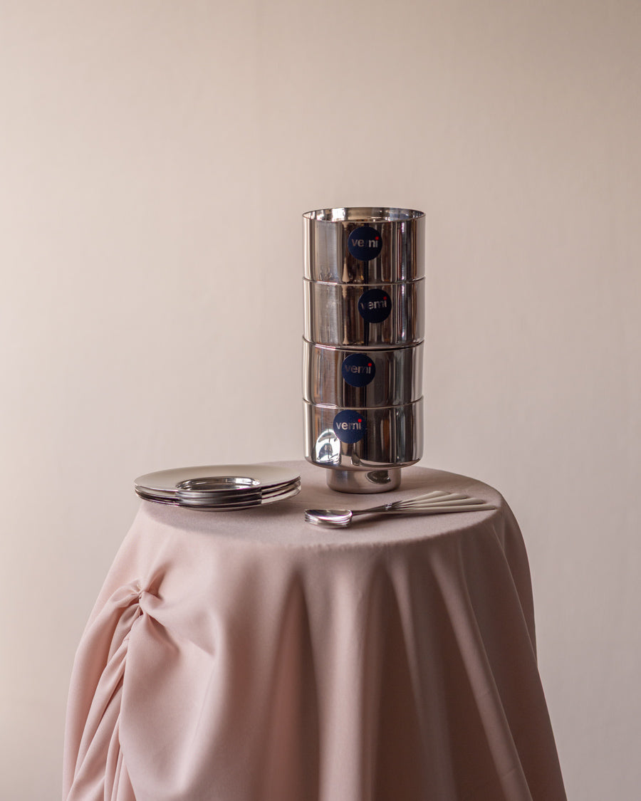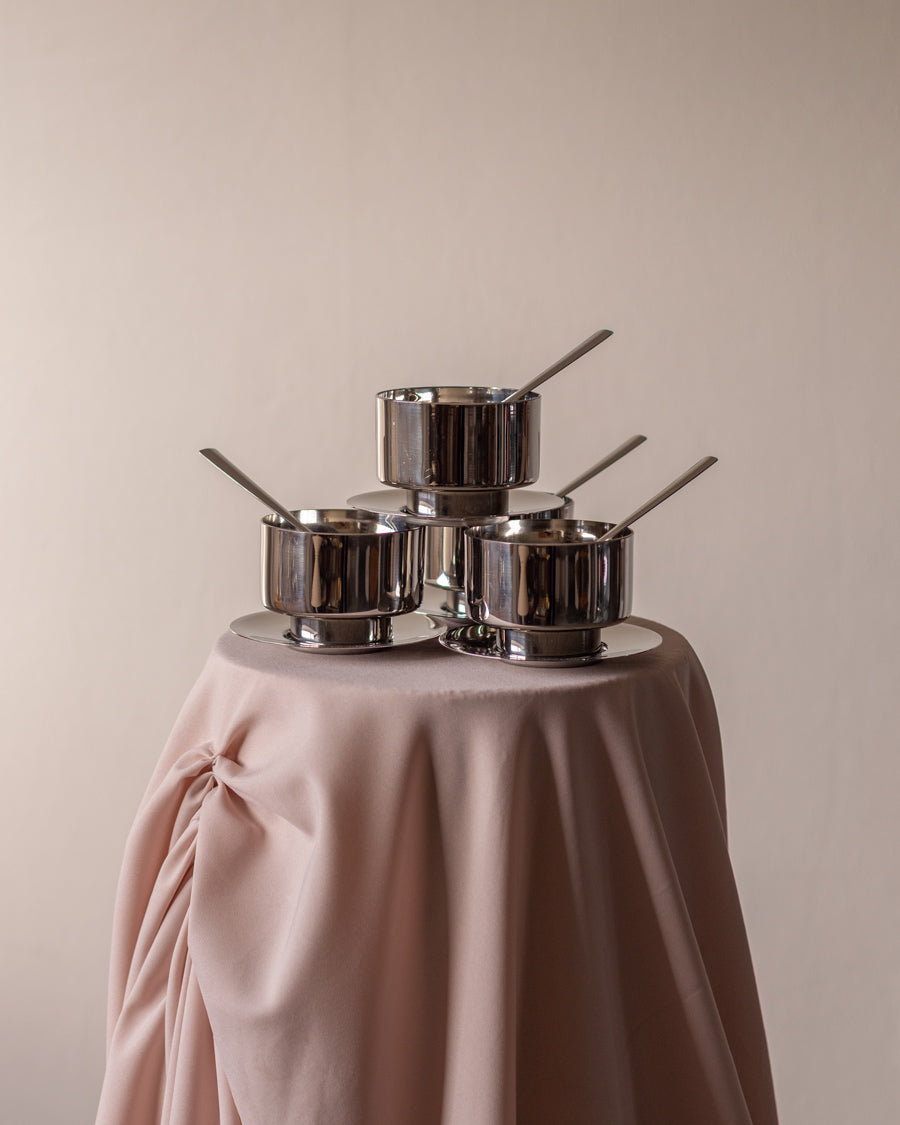 4 dvigubų sienelių ledainės su šaukšteliais ir lėkštutėmis, sukurtos italų gamintojo - Vemi.