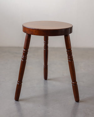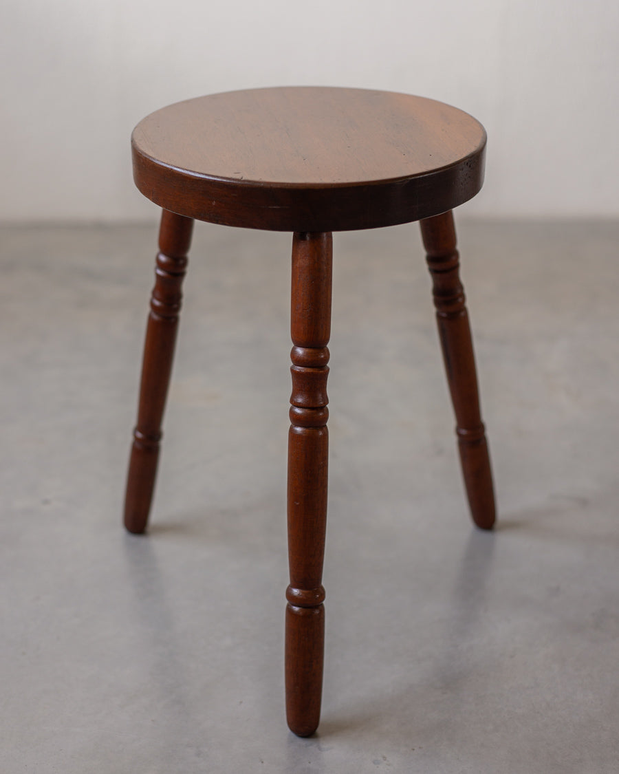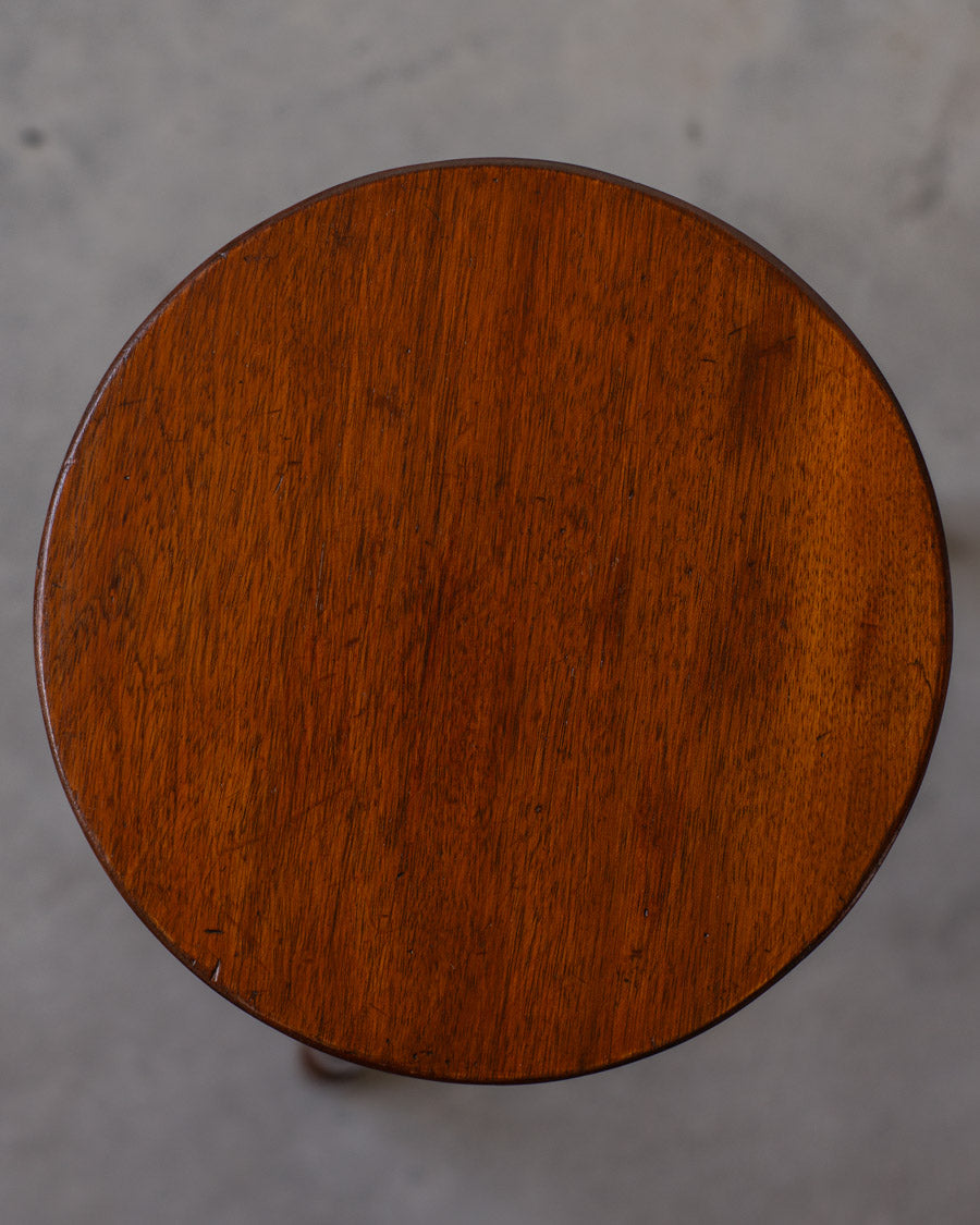 Mūsų rankomis restauruotas vintažinis medžio masyvo šoninis staliukas, tamsiai rudos spalvos.